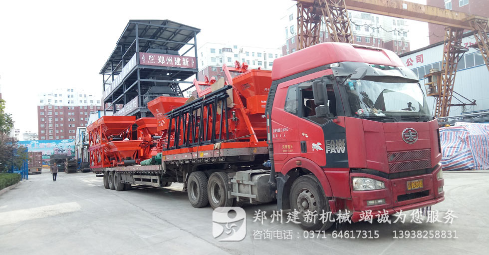2017年9月24日,一臺臺攪拌機與配料機在運貨司機以及建新發貨人員、裝貨人員的共同努力下,如期的將建新生產的750混凝土攪拌機800配料機設備批量發送至發送河南商丘,敘述此次發貨已經是近三月內建新為商丘客戶提供的第四批攪拌站設備。